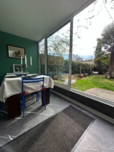 Une véranda isolée de 8,55 m² prolonge l’espace de vie et permet de profiter du jardin toute l’année.
