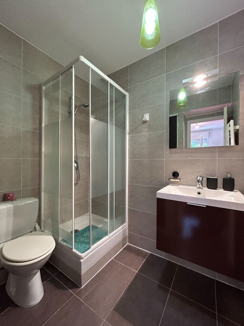 L’appartement se compose d’une entrée, d’un séjour lumineux ouvrant sur un magnifique jardin privatif de 75 m² exposé plein sud et sans vis-à-vis, d’une cuisine équipée, d’une chambre confortable avec salle de bain attenante et de rangements.