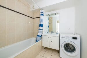 Il se compose d’une vaste entrée, d’un séjour lumineux ouvrant sur un balcon exposé plein sud, d’une cuisine indépendante avec accès au balcon, d’un dégagement avec placard, de deux chambres et d’une salle de bains.