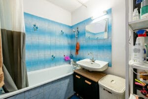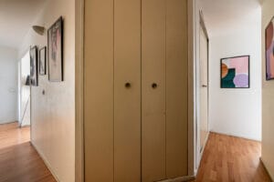 Il se compose d’une entrée avec rangements, un séjour avec accès au balcon, cuisine ouvrable sur le séjour, trois chambres, une salle de bains, wc. Beaucoup de rangements !