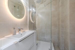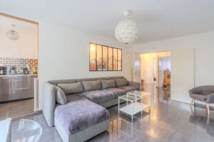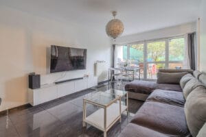 Un séjour lumineux avec accès direct à une belle terrasse carrelée